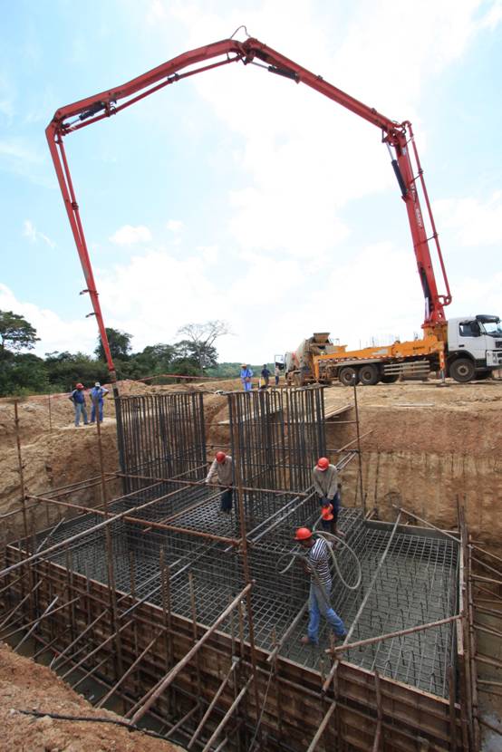 中铁二局委铁项目部桥梁承台混凝土灌注作业